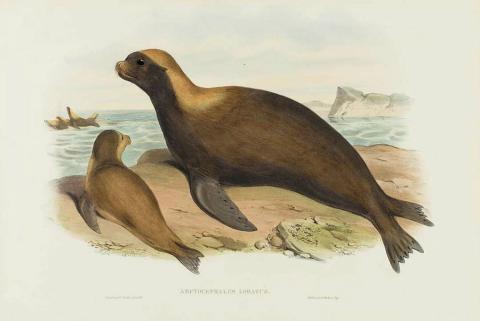 Arctocephalus lobatus (Cowled Seal) (from 'The mammals of Australia' series) 1845-63, published 1863