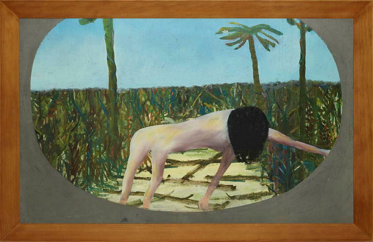 Nolan left Sunday and her husband John’s creative enclave ‘Heide’, near Melbourne, in July 1947, journeying to Brisbane to escape their entangled domestic situation. In Brisbane, conversations with librarian and poet Barrett Reid encouraged Nolan to explore Mrs Fraser’s 1836 stranding off K’gari (known as Fraser Island from 1847 to 2023). He made trips to K’gari and visited the State Library of Queensland, where he poured over tales of Fraser’s marooning, time spent with Traditional Owners the Badtjala people, and her rescue by convict John Graham. In October 1947, Nolan made an initial series of twelve paintings on K’gari, including this one, and showed the artworks in his first commercial gallery exhibition, at Brisbane’s Moreton Galleries, the following year.