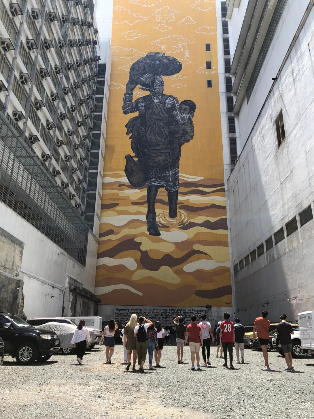 Archie Oclos / The Philippines, b.1989 / Bakwit (evacuees) 2019 / Site specific mural / 7000 x 2286cm / Benilde SDA campus, Dominga St. Malate, Manila / © Archie Oclos / Photograph: Choie Funk