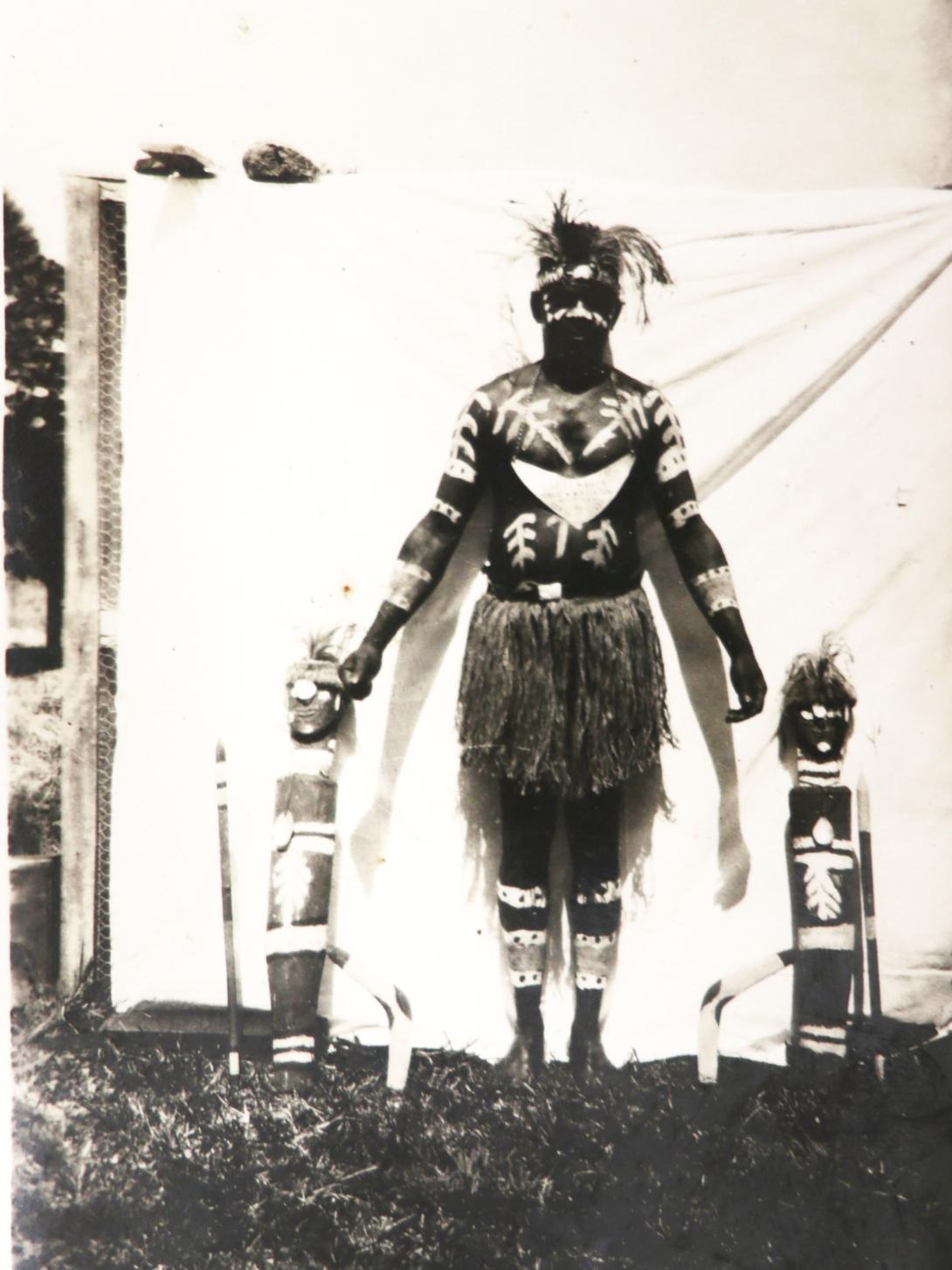 Fred Embrey is remembered as a respected leader at Cherbourg in the 1920s and ’30s, as well as a celebrated composer, songman and choreographer. Songmen were held in high esteem across Aboriginal societies; some of Embrey’s songs continue to be performed at events across Queensland.2 His central role in leading the public performances of the Cherbourg and ‘South Burnett’ dancers is remarked upon in many press articles in the 1920s and 30s. What is perhaps less well known is that he was also an active maker of art objects.