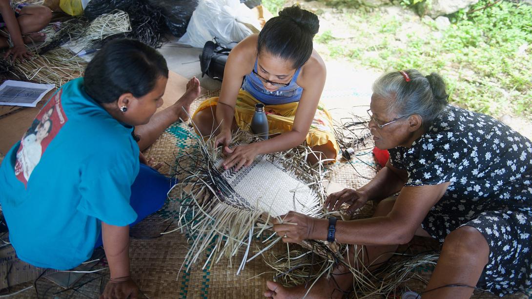 Kathy Jetñil-Kijiner / Jaki-ed weaving workshop, Majuro, Marshall Islands, September 2017 / Photograph: Christine Germano Image courtesy: The artist and University of South Pacific, Majuro