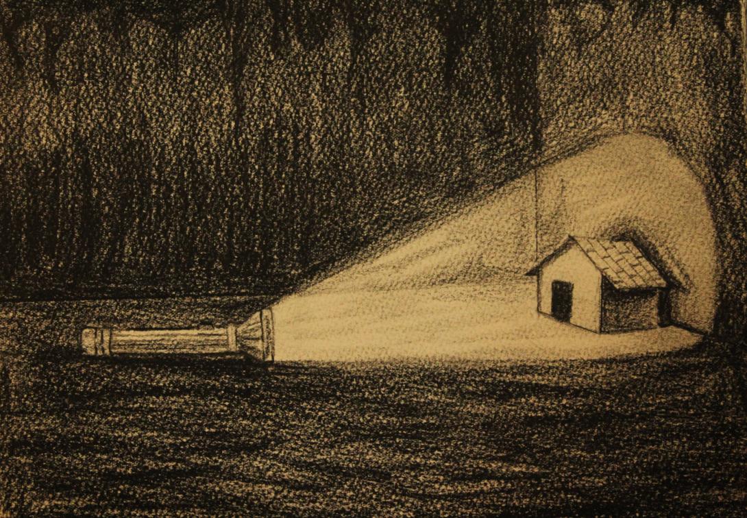 Prabhakar Pachpute / India, b.1986 / Sketch from Canary in a Coalmine 2012 / Charcoal pencil on paper / Image courtesy: The artist and Clark House Initiative, Bombay / © Prabhakar Pachpute