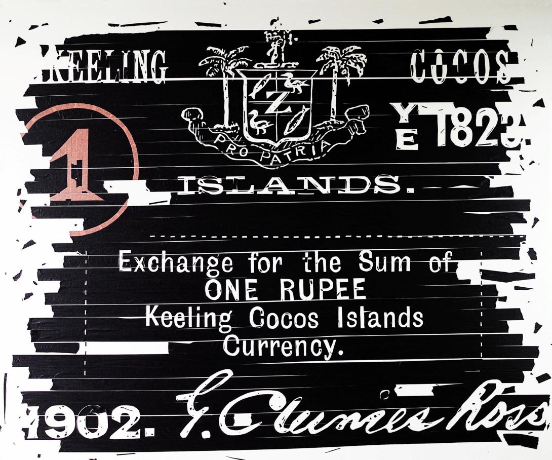 Chong Kim Chiew / Malaysia b.1975 / Cocos (Keeling) Islands (from 'Banknotes' series) 2021 / Tape on canvas / 150 x 180cm / Purchased 2021. QAGOMA Foundation / Collection: QAGOMA / © Chong Kim Chiew / Image courtesy: The artist and A+ Works of Art