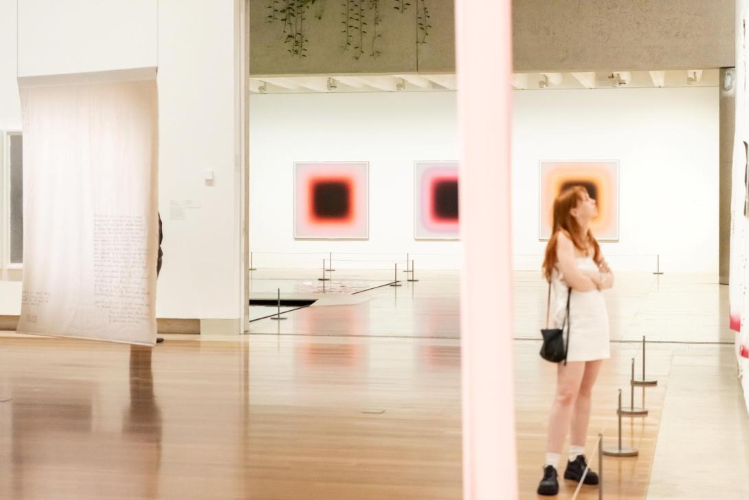 Views of Daniel Boyd’s Untitled (-27.4721524, 153.0181102) 2023, installed for ‘Living Patterns’, September 2023 / Courtesy: The artist, Sydney, and Roslyn Oxley9 Gallery, Sydney / © Daniel Boyd / Photographs: C Callistemon, QAGOMA