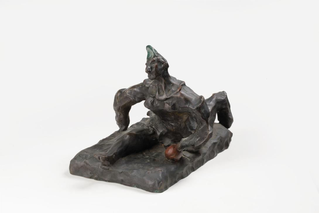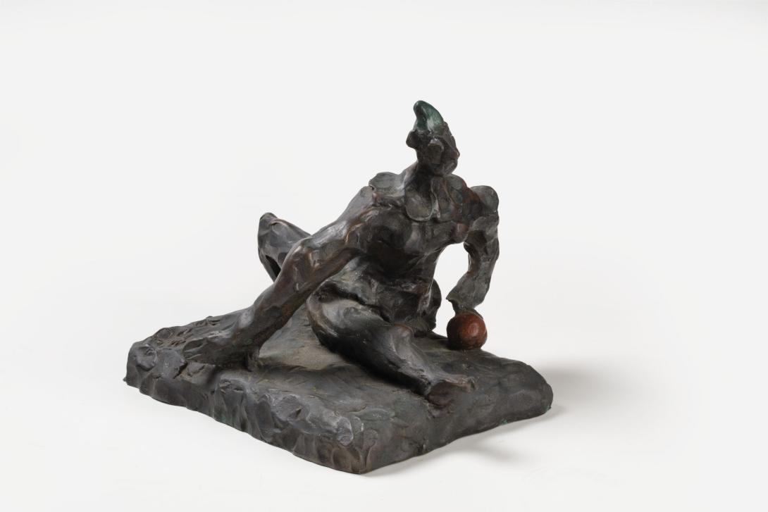 Inspired by visits to European circuses, Furlonger produced a series of maquette-sized bronze works depicting circus animals and performers, such as Little splits 2006 (pictured here from two angles).